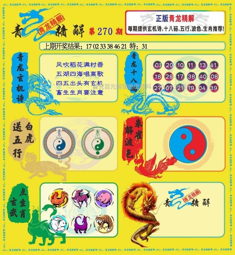 275期平特:【龙】 275期二连:【龙鸡】【羊鼠】 275期三连:【龙鸡狗】【羊鼠蛇】 |