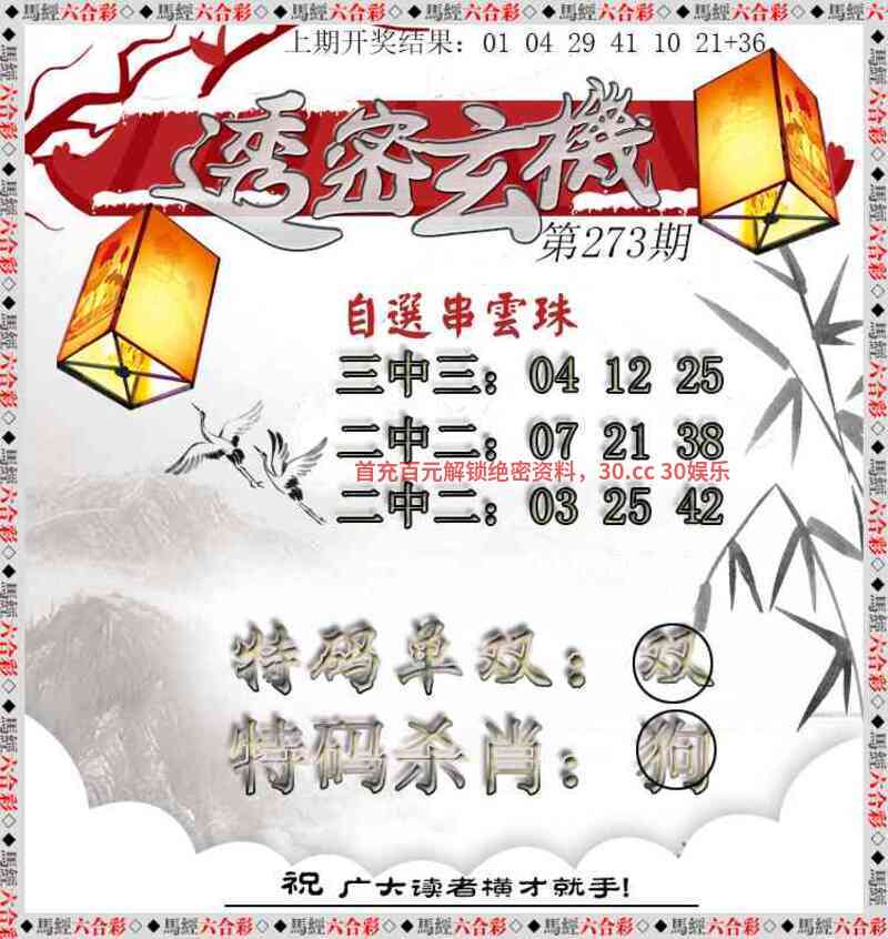 273期平特:【虎】 273期二连:【虎蛇】【龙鸡】 273期三连:【虎蛇狗】【龙鸡鼠】 |